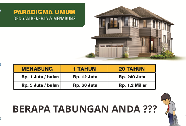 Yaitu dengan bekerja dan Menabung, Pola kerja ini dilakukan oleh lebih dari 80% masyarakat dunia, artinya mereka membarter waktunya untuk mendapatkan uang, dan sisanya mereka tabung untuk mewujudkan impian masa depannya. Namun kemampuan menabung orang indonesia hanya mampu bertahan sampai 1 tahun, sebab jika hari raya, Biasanya tabungannya bersih, untuk keperluan hari raya, jadi pola kerja ini terbukti gagal dalam mewujudkan impian masa depan.